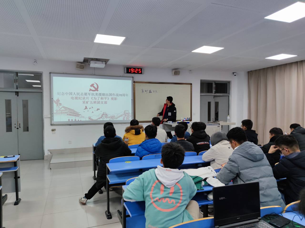 采矿工程2020-3班团支部集体观看,用心体会着志愿军战士不畏艰险、英勇杀敌和舍生忘死的英雄气概。观影结束后,同学们纷纷表示,要珍惜现在来之不易的和平生活,并表示要通过自己的努力,树立振兴中华的爱国情怀,为祖国建设添砖加瓦。