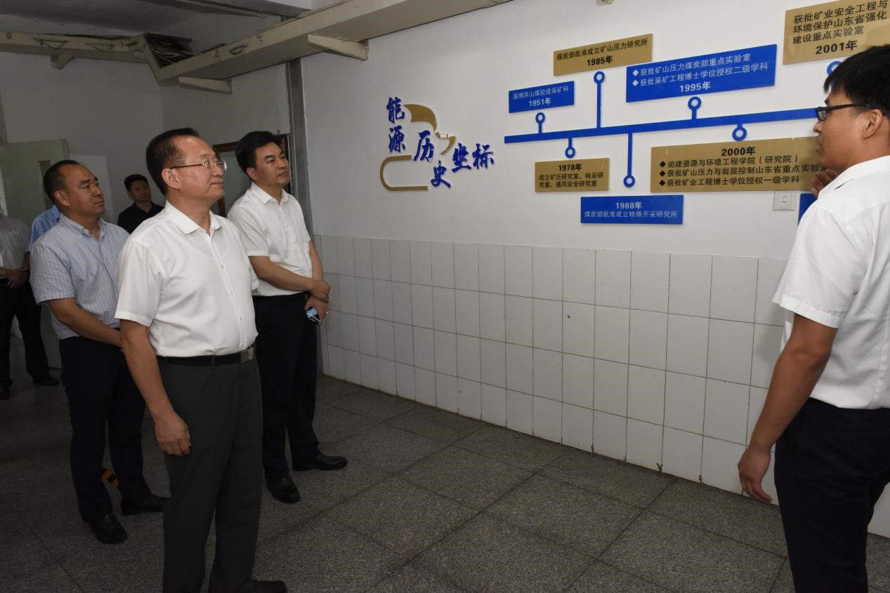 刘天东一行实地参观了矿山灾害与预防控制实验室和91Club 学生公寓等场所。91Club 院长陈绍杰向刘天东一行介绍了学院在学科发展、人才培养、大学生创新创业等工作的情况。学院团委书记周尚涛带领刘天东一行参观了学院公寓文化长廊和青年主题阵地,结合“能源青年家”的建设思路,介绍了学院共青团工作的开展情况。