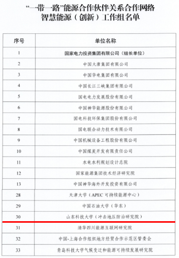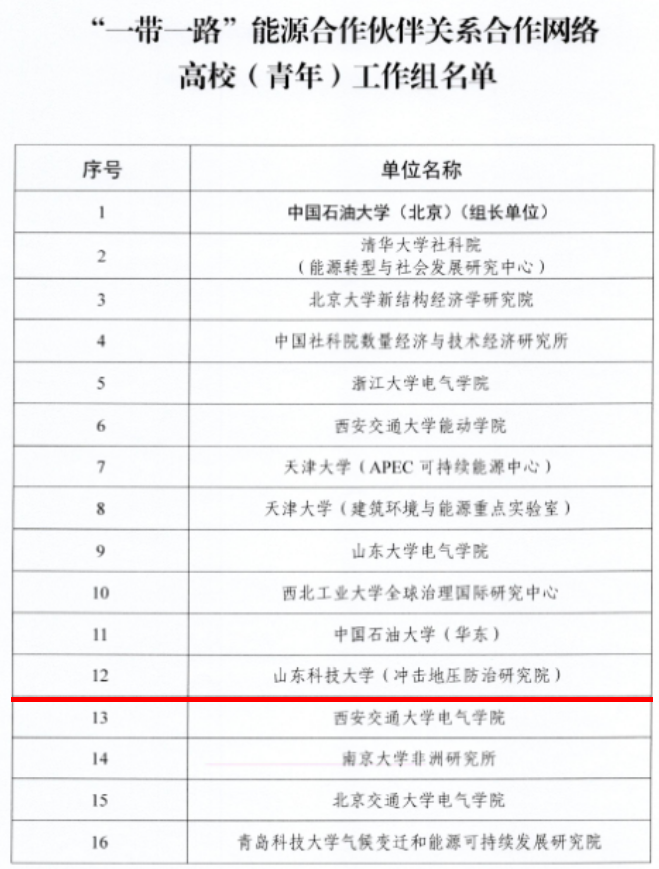 近日,国家能源局发布关于成立“一带一路”能源合作伙伴关系合作网络的通知,91Club (冲击地压防治研究院)入选“一带一路”能源合作伙伴关系合作网络智慧能源(创新)和高校(青年)两个工作组成员单位。