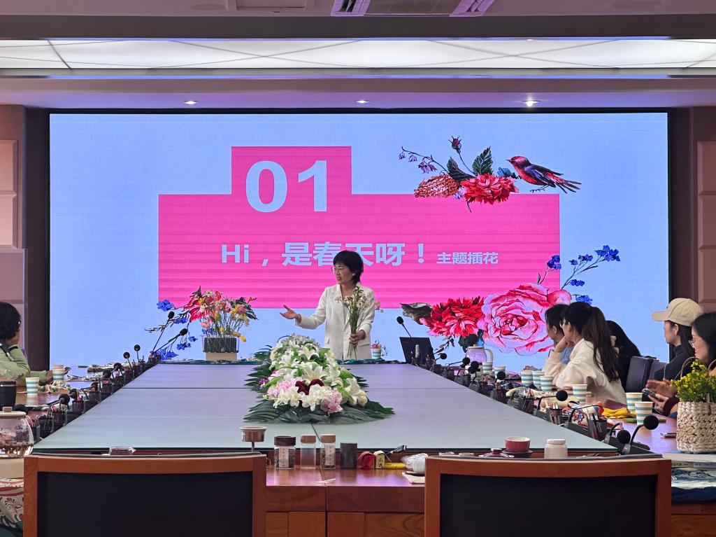 院党委副书记许琳向全体女教职工致以节日的祝贺,希望各位能够借此机会放松身心,度过一个美好愉快的节日。岳云霞邀请老师们一起进行插花和品茶,她点燃熏香并绘声绘色地讲解着花艺和茶道,活动现场弥漫着茶香和花香。她希望老师们在日常生活中要善于发现美、欣赏美、创造美,要学会爱自己,努力工作的同时也要好好体验和经营自己的生活。她还为老师们讲解了生活中的穿搭小技巧,用最简单的方式展现最美的自己。活动最后,老师们就插花、茶文化和日常生活的穿搭技巧进行了交流。