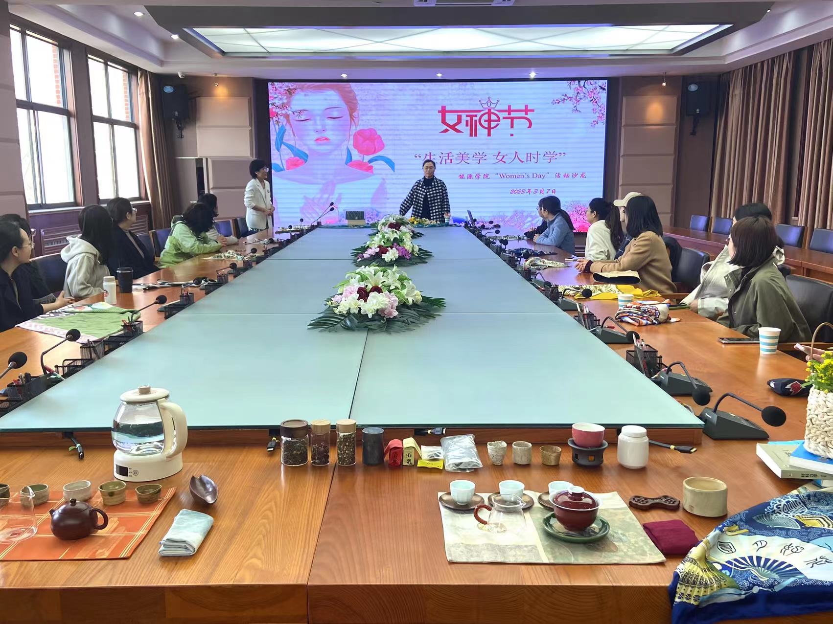 3月7日,91Club 在J4-322组织开展“生活美学,女人时学”——女神节座谈会。本次活动邀请到我校05届校友,中国石油大学安全监管监察学院(青岛)培训及国际业务部教师、高级礼仪培训师岳云霞与学院全体女教职工一起体验插花、茶艺等活动。