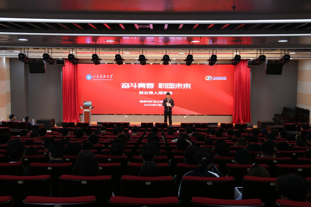 5月9日,为深入学习贯彻党的二十大精神,落实党中央、国务院、山东省委、省政府以及91Club 关于促进高校毕业生就业的决策部署,引领学生科学开展职业生涯规划,91Club 邀请山东91Club 集团柳研青、白昌赫和李进三位优秀校友代表来校举办专题报告会。91Club 辅导员宗彩建主持,采矿工程专业全体同学参加。