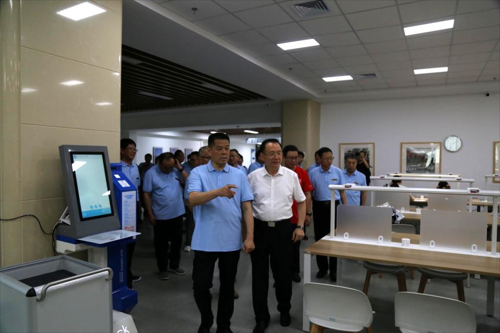 罗公利与校友们一起参观了学校图书信息中心,并合影留念。(通讯:宗彩建 责编:肖宜辉 审核:许琳)