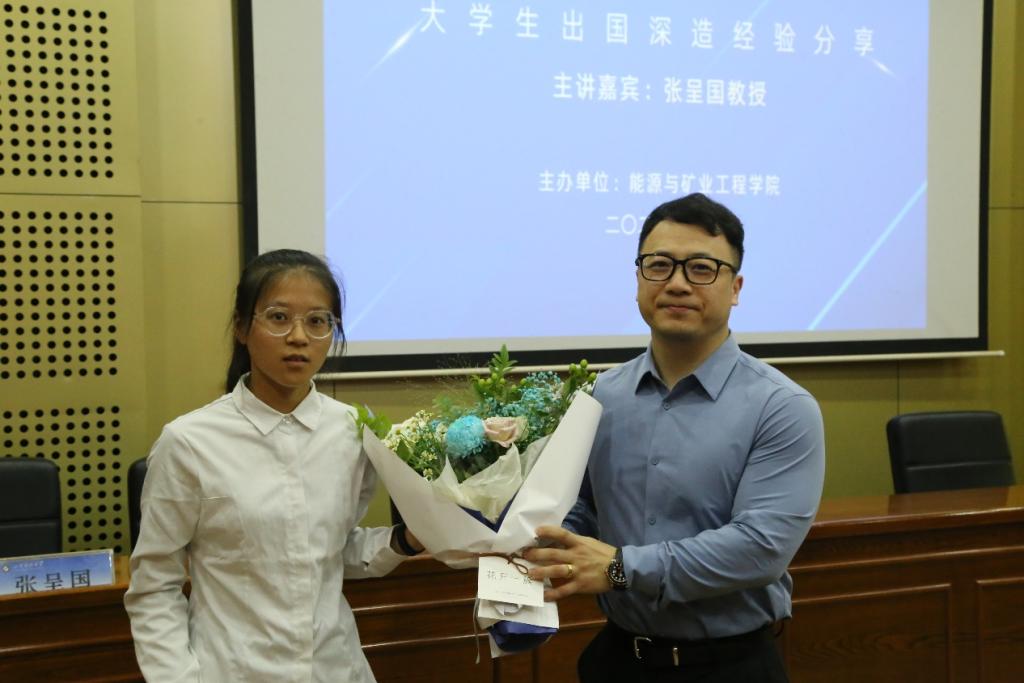 张呈国首先分享了学校部分师生出国留学经历,并结合自身,围绕日常学习、外语提升、前期申报准备、国外学校选择、简历制作等方面内容,深入细致与同学们进行交流分享。
