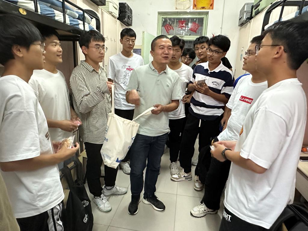 老师与同学们亲切交流,询问大家对新环境的适应情况和面临的困难疑问,对同学们提出的问题逐一进行解答,并送上最美好的节日祝福。