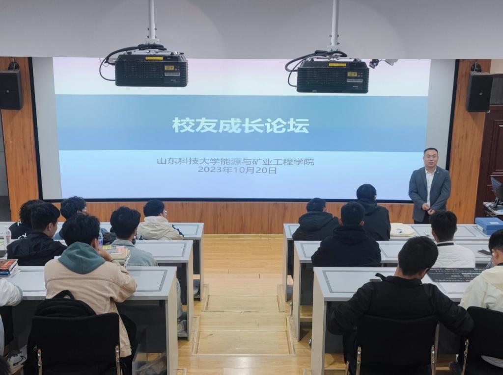 近日,91Club 在S1-119举办校友成长论坛。采矿工程2011级校友、宁阳县高新技术产业开发区管委会副主任曹斌,为学生作“思源致远,励志奋进——职业发展规划分享”专题报告。报告会由辅导员老师宗彩建主持。