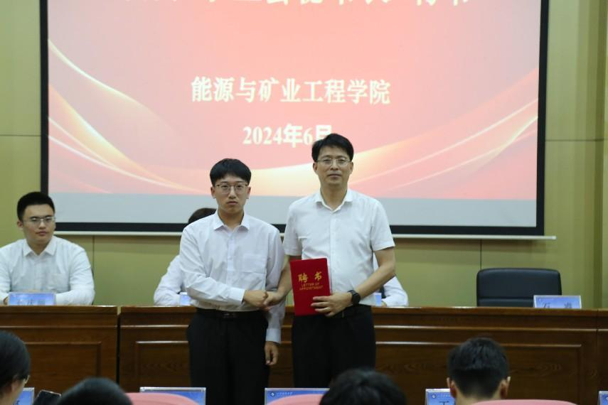 会上,石睿向新一届91Club 学生会秘书长周尚涛颁发聘书。