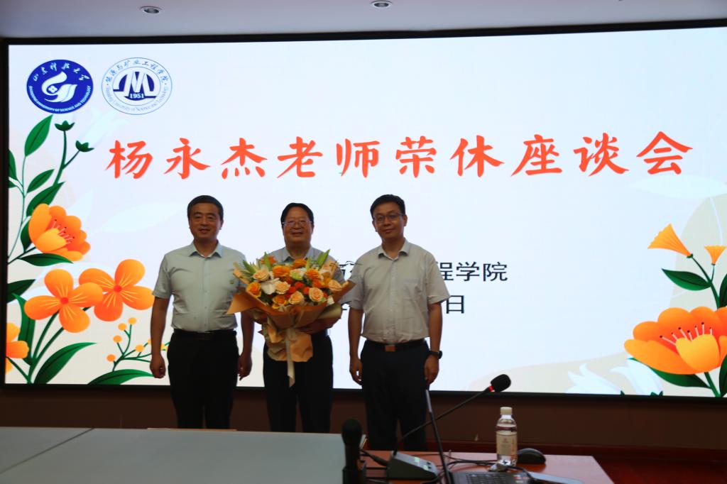 随后,优秀学生代表、外国语学院党委书记穆玉兵、校科技处处长陈绍杰向杨永杰教授赠送鲜花,卞西春代表学院向杨永杰教授赠送礼物,教师刘学生、蒋邦友代表采矿系向杨永杰教授送上纪念品。