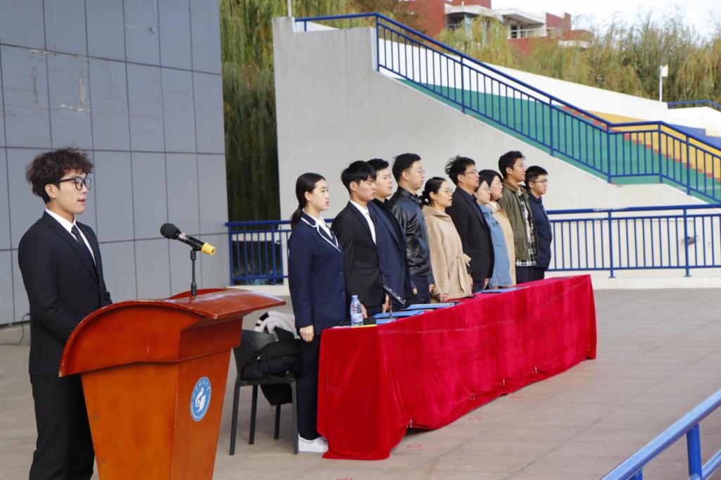 辅导员陈冲、采矿工程2022级学生李浩宇分别代表裁判员和运动员庄严宣誓。