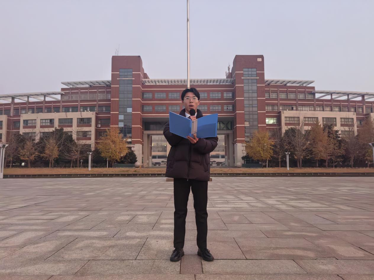 周尚涛在国旗下发表演讲,在演讲中呼吁能源学子接过历史的接力棒,继承并发扬“一二·九”运动爱国精神,胸怀远大理想,勇攀科学高峰,为能源与矿业事业贡献自己的智慧和力量。2024级本科生代表王呈宇、李泽华发表了主题为“祭先驱热血,谱时代华章”的演讲,歌颂革命先烈的光荣事迹和崇高精神,激励青年学子铭记革命历史,坚定理想信念,担当新时代的青年使命。最后,由学生代表何文贤带领全体参会人员现场宣誓,发出“请党放心,强国有我”的坚定誓言。