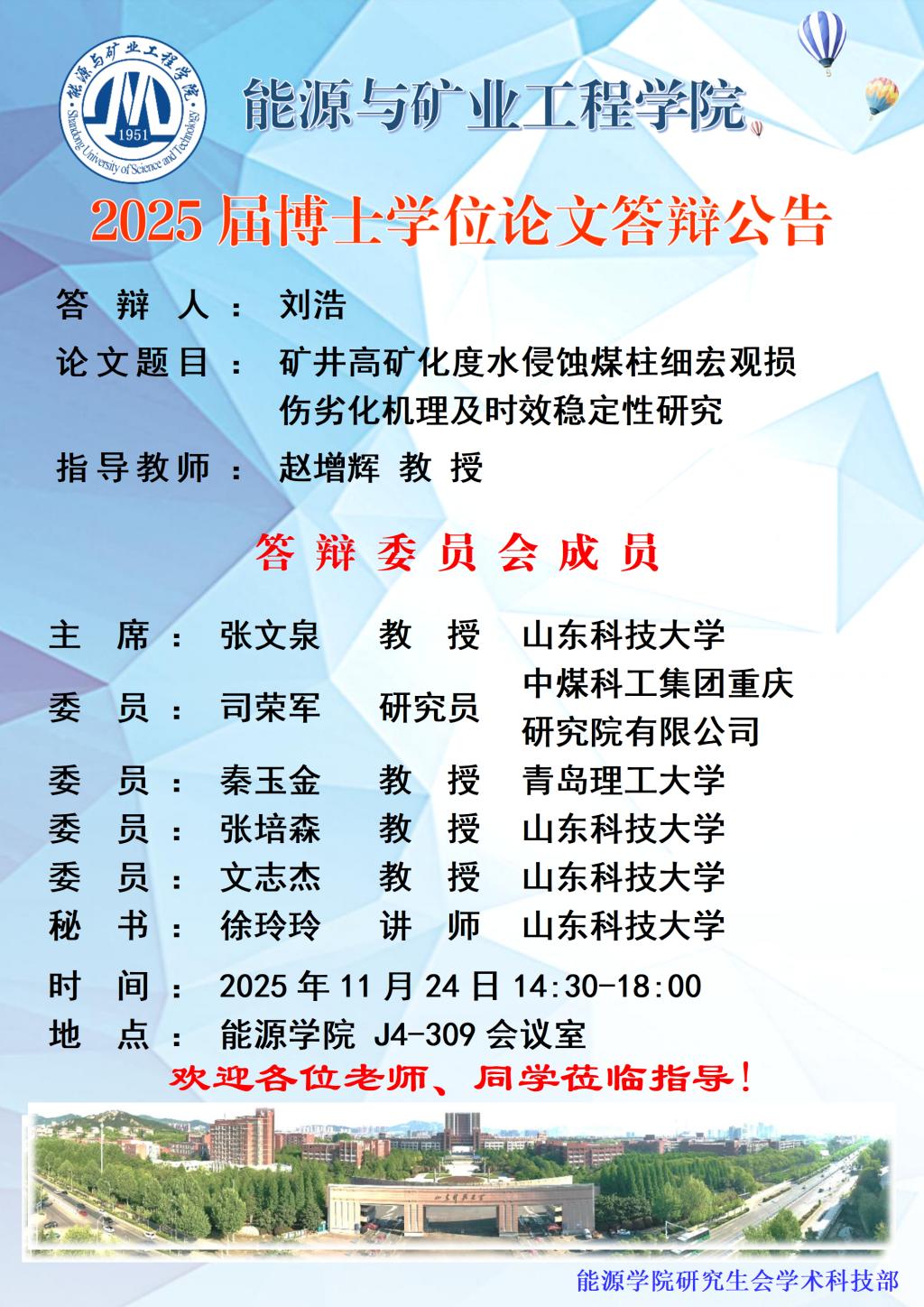 2025届博士学位论文答辩公告-刘浩