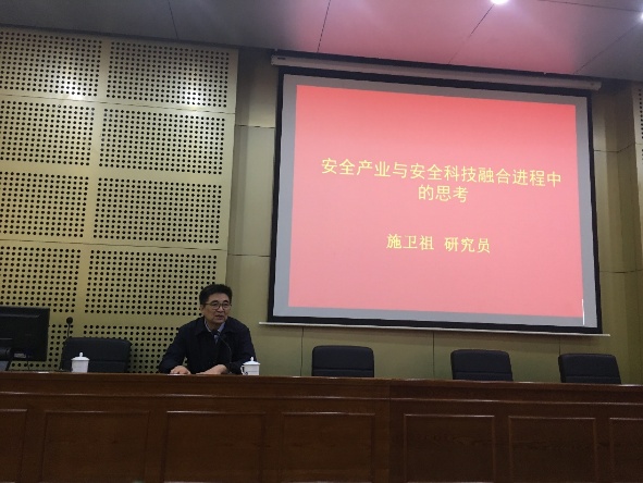 5月12日上午,原国家安监总局规划科技司副司长施卫祖研究员受邀在J4-101报告厅作学术报告,报告主题为“安全产业与安全科技融合进程中的思考”。报告由副院长辛嵩教授主持,150余名师生到场聆听了本次报告。