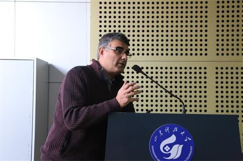 Kumral Mustafa教授做了题为《复杂性、组织与人为因素对矿山安全的影响》的报告。会上,他就21世纪安全问题新的来源展开讨论,深入阐述了矿山安全工程中的人机交互以及环境对生产的影响,同时介绍了他正开展的“生产认知与动机偏差及其启动式”等课题,并结合具体事例进行分析。会后,Kumral Mustafa与学院师生就矿山安全相关问题进行了探讨分析。