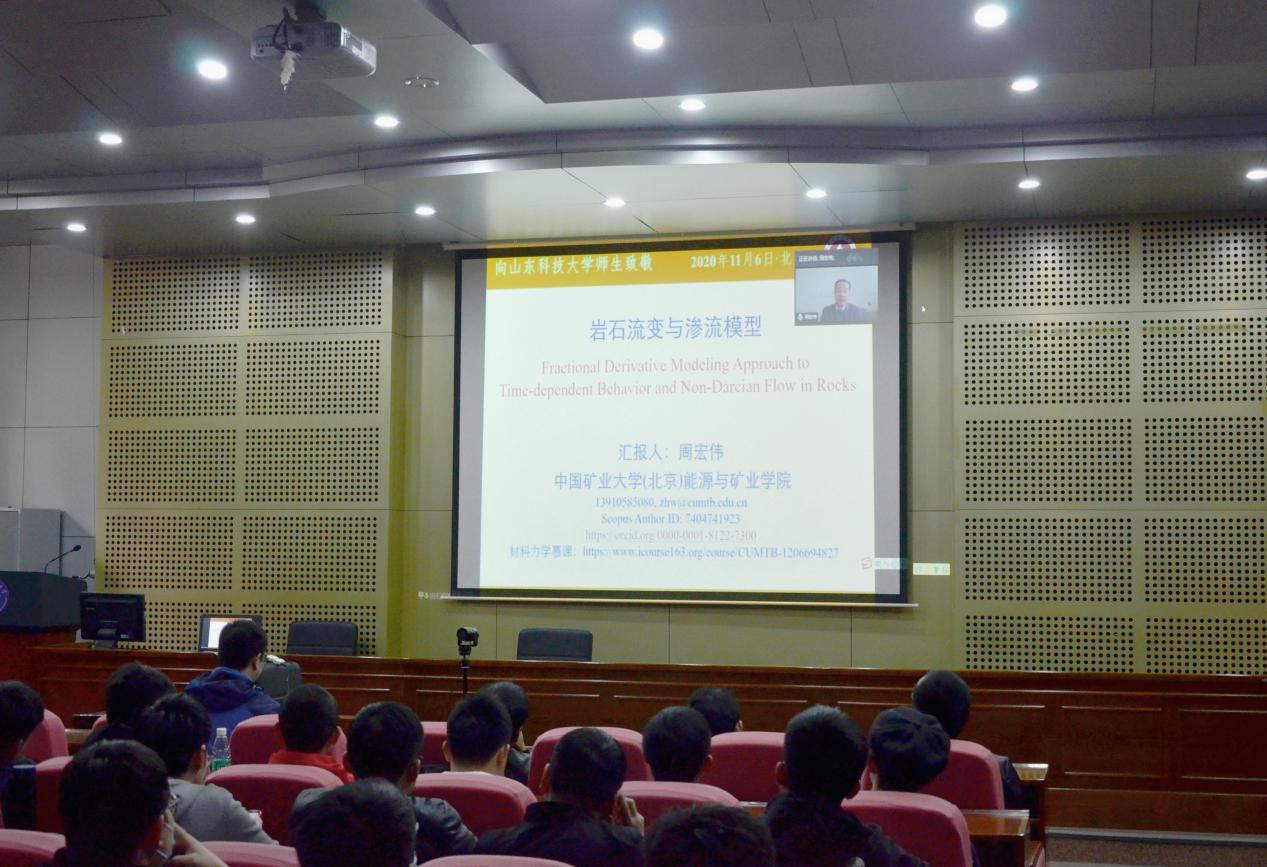 本期邀请了中国矿业大学(北京)能源与矿业学院院长周宏伟,作题为“岩石流变与渗流模型”的学术讲座,学院教师、研究生和本科生参加了讲座,能源与矿业工程学院院长陈绍杰主持。