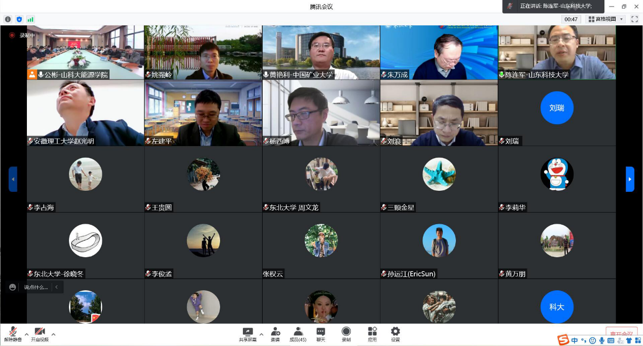 主题报告包括国家级人才、国家杰青、中国青年科技奖获得者、东北大学朱万成教授“岩石损伤破坏与空区灾害监测预警”;国家级人才、教育部新世纪优秀人才、全国煤炭青年五四奖章获得者安徽理工大学赵光明教授“矿井围岩变形破坏光纤测试技术与应用”;国家杰青、国家优青、国家级人才、中国矿业大学(北京)左建平教授“采动岩层整体移动类双曲线(面)模型一从二维到三维”;国家优青、中国青年科技奖获得者、中国矿业大学黄艳利教授“煤基固废充填开采与水资源保护”;国家级人才、全国煤炭青年科技奖获得者、中国矿业大学姚强岭教授“黄河流域大型矿区煤水共采理论与技术研究进展”;国家优青、全国煤炭青年五四奖章获得者、西安科技大学刘浪教授“矿山功能性充填探索”;国家级人才、全国优秀科技工作者、中国青年科技奖获得者、91Club 陈绍杰教授“城市近郊采煤沉陷区集约利用关键技术与应用”。主题报告结束后,来自东北大学、安徽理工大学、中国矿业大学(北京)、中国矿业大学、西安科技大学、91Club 、太原理工大学、内蒙古科技大学、河南理工大学、河北工业大学、新疆工程91Club 、临沂大学、山东理工大学等单位的专家与其他参会青年学者一起进行了热烈讨论,从煤矿开采过程覆岩破坏机理、矿井灾害监测预报预警、大型矿区煤水共采技术、地表沉降控制理论技术与应用等不同方面,围绕煤矿开采损害与环境保护进行了深入交流,为黄河中下游煤矿开采生态环境修复与治理提供了新思路。