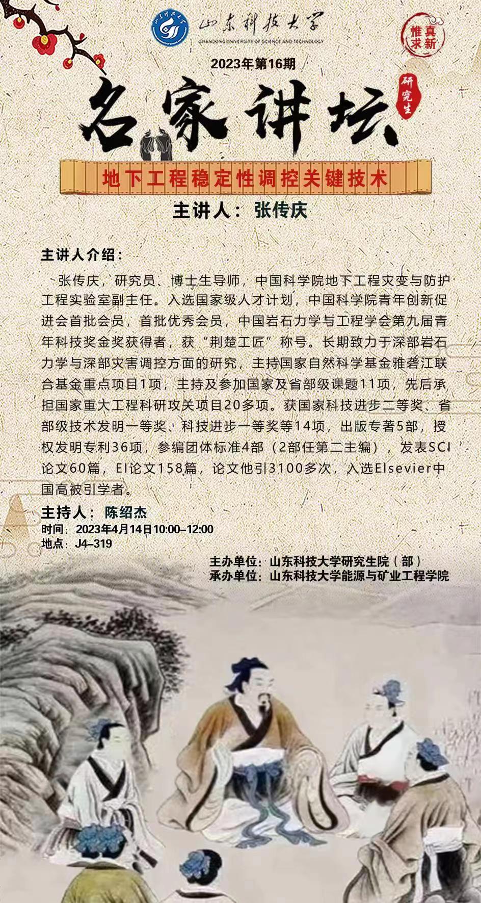 “名家讲坛”2023年第16期:地下工程稳定性调控关键技术