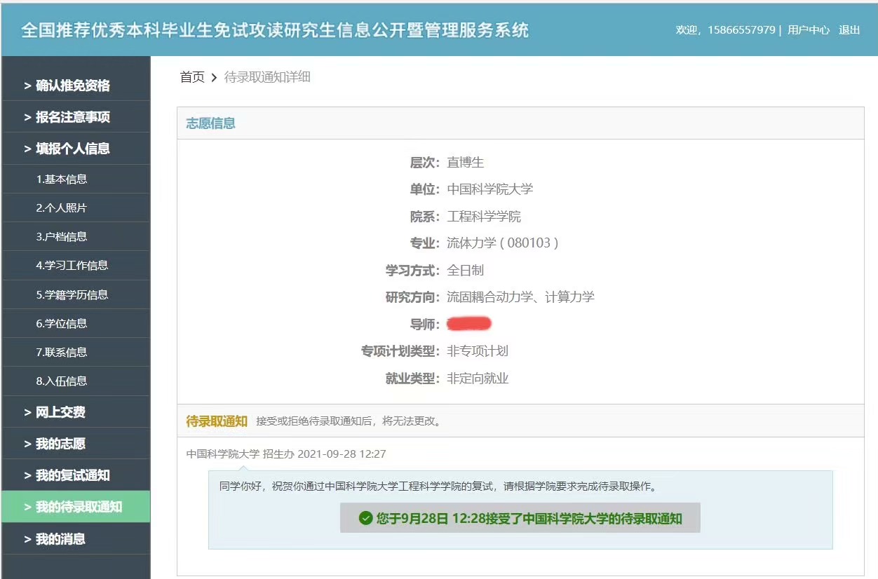 凭借扎实的数理力学基础与学术创新潜质,付靖宇在外校接收推免生面试中表现突出,在夏令营预推免期间斩获北京大学、清华大学、中国科91Club 大学工91Club 、中国科学技术大学、南方科技大学、北京航空航天大学、西安交通大学、同济大学、大连理工大学、山东大学、西北工业大学等名牌高校的Offer。同时他深得国科大的磁流体力学领域大牛教授、北大的刚体动力学领域大牛教授的赏识。在被名师们赞许认可的瞬间,他不禁感慨大学三年的一切辛勤付出都是值得的!