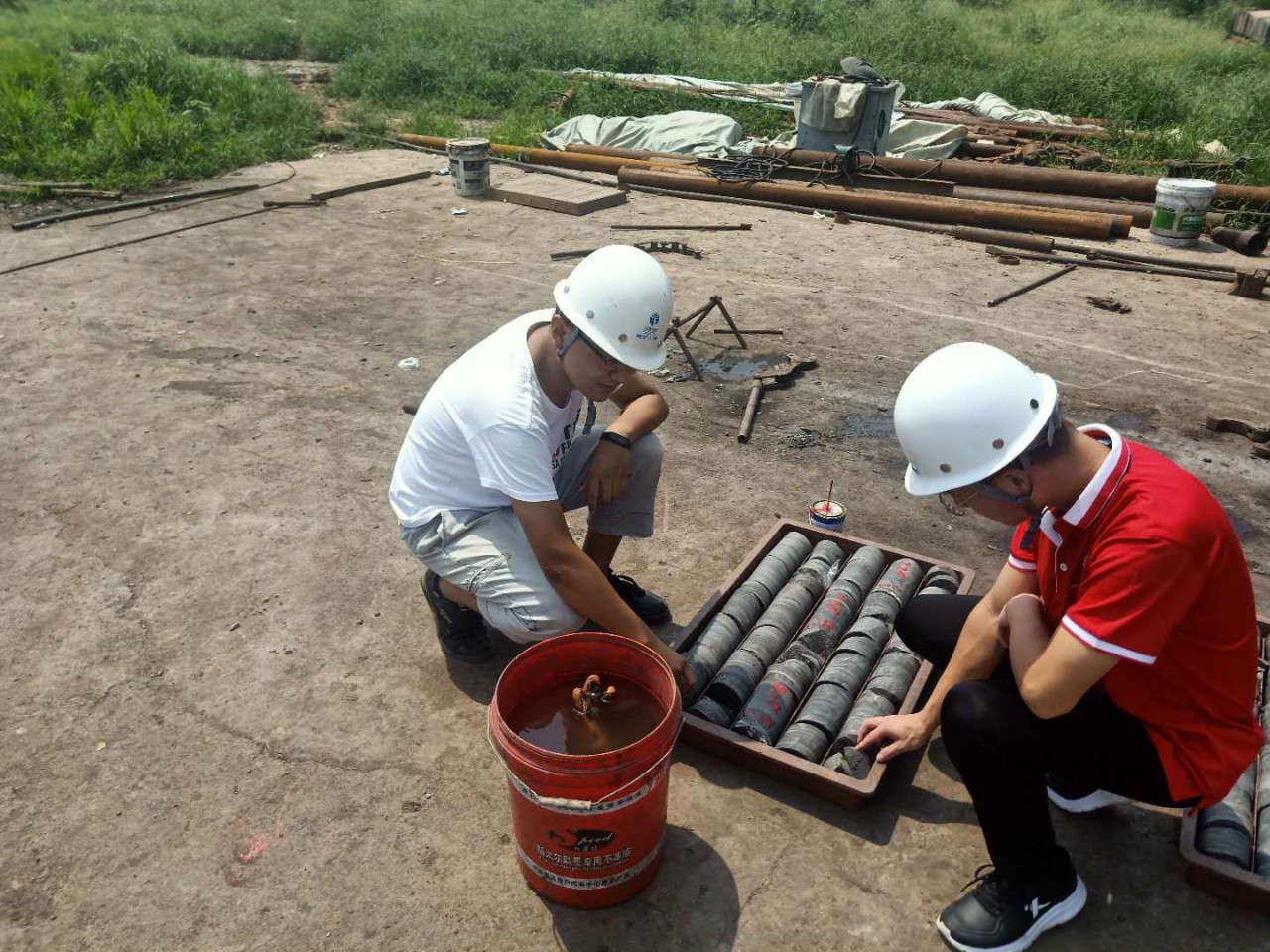 随后,该工程钻机丁机长为队员们发放安全帽等设备并带队员们参观了工作区,除钻机外,工作区还包括冲洗液循环系统和放置管材物资的材料库等。丁机长向队员们详细讲解了该工程的整体规划,并介绍了地热勘察对莒县91Club 发展的重要意义。据丁机长介绍说,该工程的基本任务是开展地热地质调查、物探、钻探和试验测试等,进而评价地热资源开发及其潜力,研究可持续开发利用模式,为当地地热资源合理开发利用与保护提供科学依据。丁机长说,目前该工程孔深已经打到800米左右,已经下φ273mm石油套管,并在套管外注浆封孔。