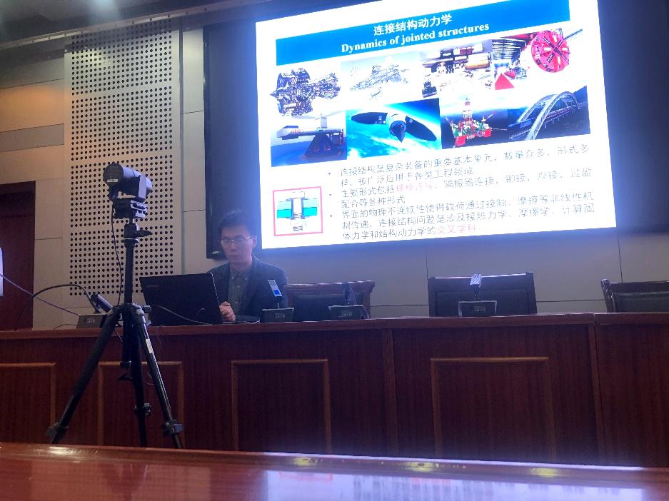 会上,力学系教师周康博士作“弹性颗粒分散体系渗流特征及模拟方法研究”学术报告,向与会师生介绍了多孔介质中弹性颗粒分散体系的非连续相渗流特征及相应的微观/宏观尺度模拟方法。力学系教师李一堃博士作“连接结构非线性力学响应与本构模型研究”学术报告,他主要介绍了连接结构静、动力学实验现象,连接接触对组合结构动力学响应的影响,以及连接结构本构模型及其在数值模拟中的应用。