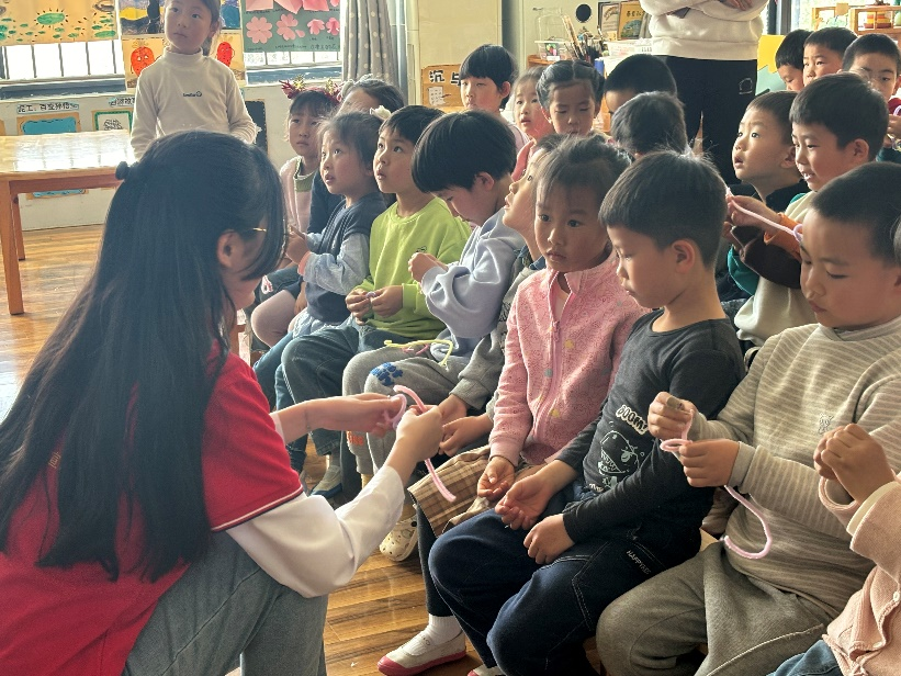 宣讲队成员林雨桐提醒小朋友们保护好自己的眼睛,在日常生活中注意眼部清洁卫生。并详细介绍了遗传因素、体质因素、环境因素对视力的影响。在科普宣讲的过程中,还开展了很多寓教于乐的小游戏。