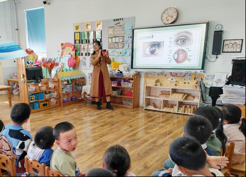 幼儿园以“爱护眼睛,拥抱光明”为主题,为幼儿园小朋友们上了一堂科普课程。