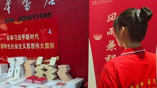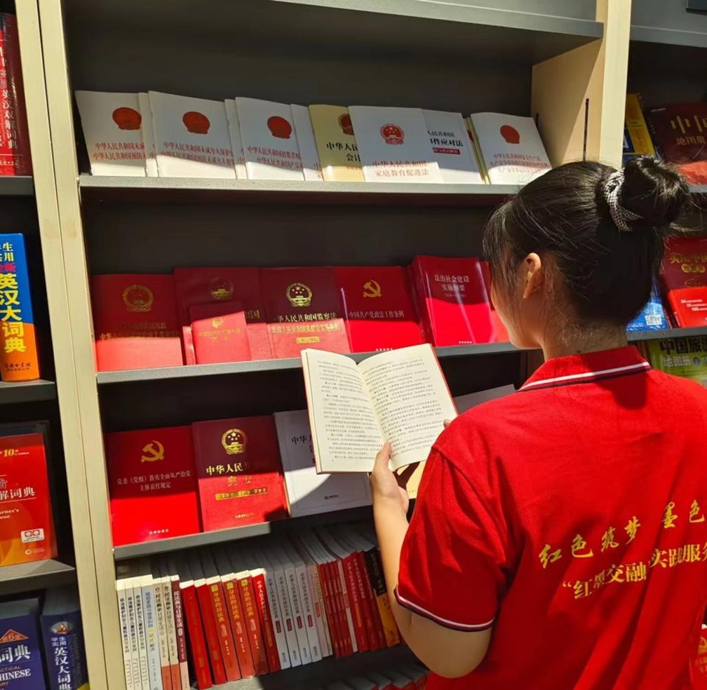 调研期间,我队卢彦霏同学为宣传习近平新时代中国特色社会主义思想,决定通过阅读并学习有关新思想的书籍来增强对习近平新时代中国特色社会主义思想的认知,她去往山东省滨州市沾化区新华书店查阅有关新思想的书籍。当天实践工作结束后,卢彦霏同学说:“通过阅读这些书籍,我可以更深入地理解习近平新时代中国特色社会主义思想的理论体系,包括其核心要义、精神实质、丰富内涵和实践要求。这些书籍通常会系统地介绍习近平总书记的重要讲话、文章和指示,帮助我们每一个人全面把握这一思想的发展脉络和理论贡献。通过这些认知的提升,我可以更好地理解中国的发展路径,以及个人在国家发展大局中的位置和作用。同时,这些书籍也是提升个人政治理论水平和思想道德素质的重要资源。”她从书店中查阅了《习近平讲党史故事》《中国共产党精神品格》《红色气质》《一切为了人民:中国共产党为什么成功》以及《百名院士的红色情缘》这五本书籍。作为新时代的一名青年,卢彦霏同学认为即使我们的力量非常渺小,但每个人的不懈奋斗,最终会为实现中华民族伟大复兴作出巨大贡献!