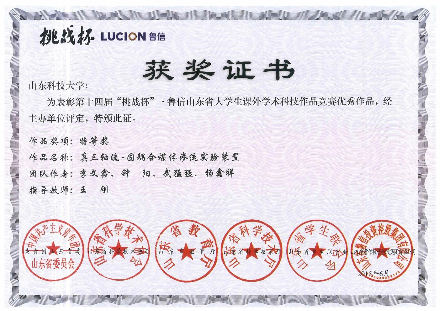 第十四届挑战杯山东省大学生课外学术科技作品竞赛特等奖